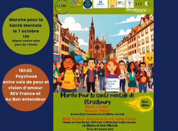Marche pour rendre la Santé mentale avec Le CLSM67 venez a cette marche et profitez de l présence du Réseau Entendeur de voix à 16h à la Maison de la Santé Mentale de l'Eurométropole de Strasbourg