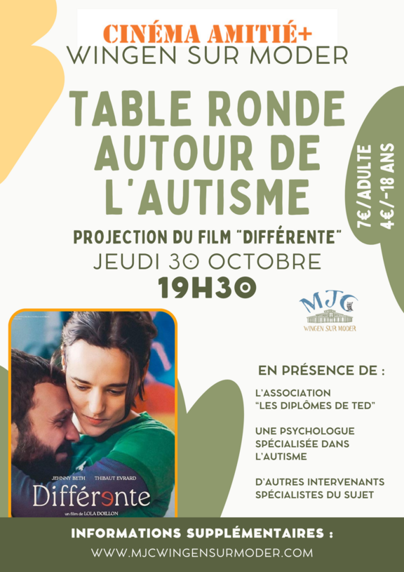 Le cinéma Amitié+ de Wingen-sur-Moder a le plaisir de vous proposer une table ronde autour de l'autisme :