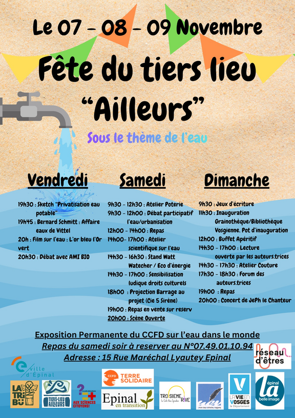7 8 9 Novembre Fête du Tiers Lieu "Ailleurs" sur le thème de l'eau